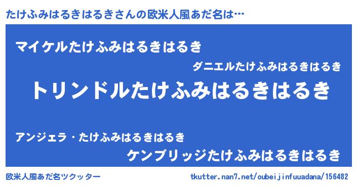 | 男性向けラノベタイトル風あだ名 | 『たけふみはるきはるき~年齢イコール彼女いない歴の魔法使い~』 |