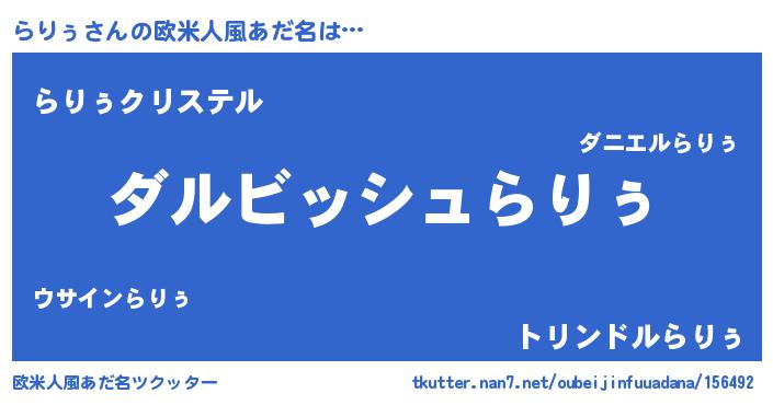 | 女子向けラノベタイトル風あだ名 | 『らりぅの契約王妃』『らりぅ様がみてる』 |