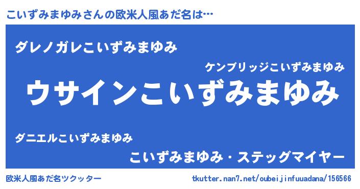 | 男性向けラノベタイトル風あだ名 | 『こいずみまゆみの嫁は女の子じゃないと思った?』 |