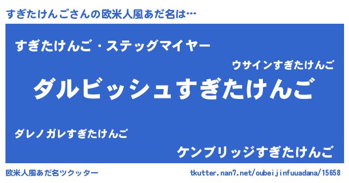 | ヘコむあだ名 | 『すぎたけんご(笑)』『すぎ太郎』 |