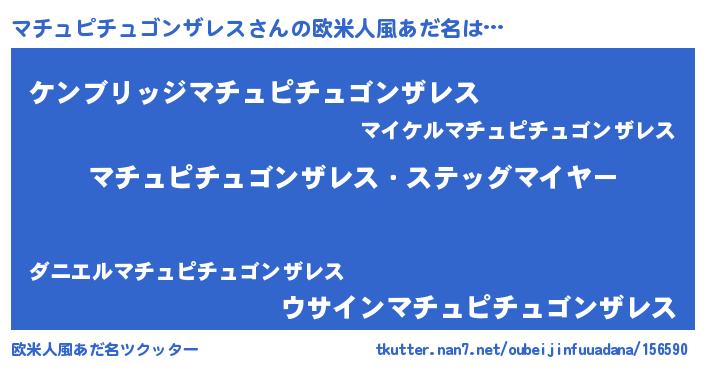 | 男性向けラノベタイトル風あだ名 | 『緋弾のマチュピチュゴンザレス』 |