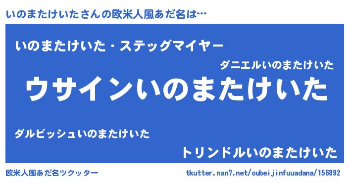 | 男性向けラノベタイトル風あだ名 | 『いのまたけいたの嫁は女の子じゃないと思った?』 |