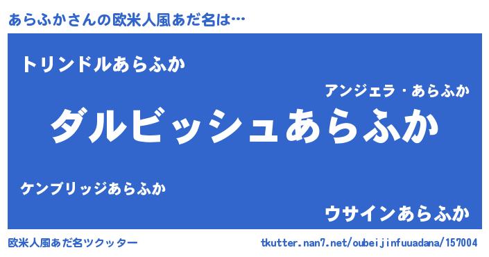 | ヘコむあだ名 | 『あらふか(爆)』『あらを』『牛乳』 |