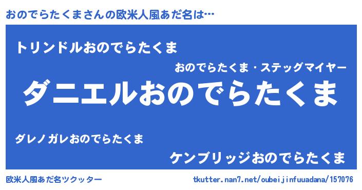 | 男性向けラノベタイトル風あだ名 | 『ノーゲーム・ノーオノデラタクマ』 |