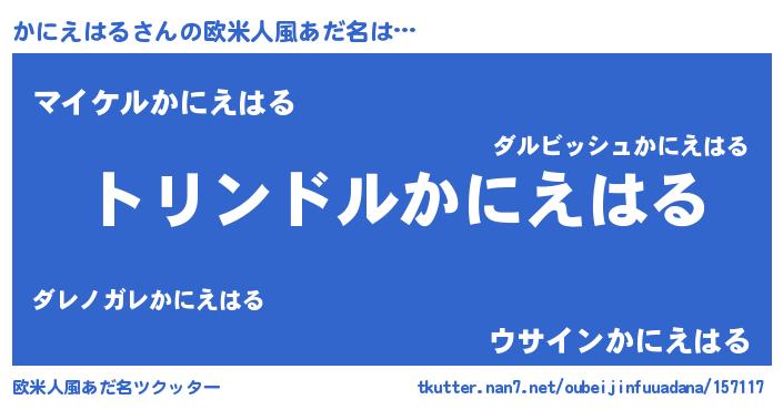| 男性向けラノベタイトル風あだ名 | 『カニエハルスレイヤー』 |