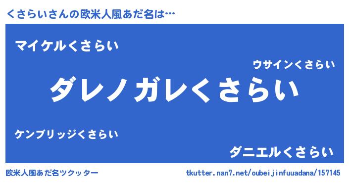 | 意味不明あだ名 | 『住所不定無職くさらい(79歳)』 |
