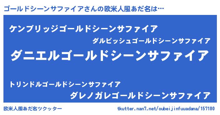 | ヒーロー風カッコイイあだ名 | 『正義の使者ゴールドシーンサファイア』 |