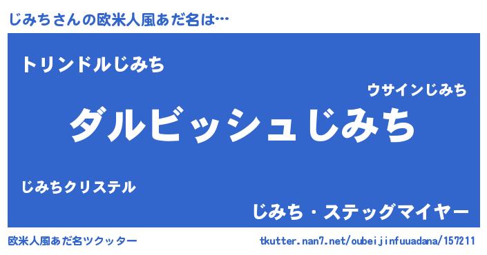 | 男性向けラノベタイトル風あだ名 | 『じみちという概念が存在しない退屈な世界 』 |