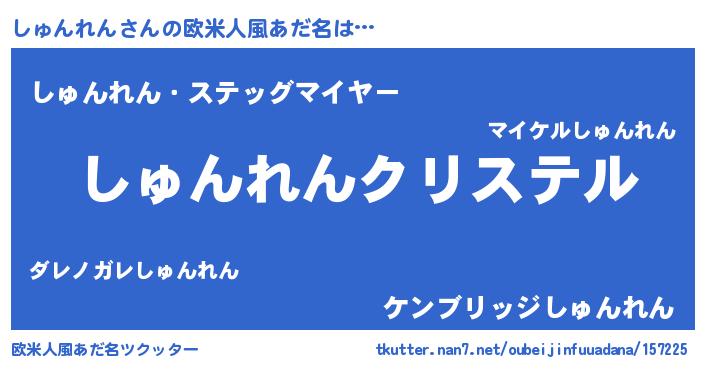 | ファンタジー風あだ名 | 『エターナルシュンレンー』『ゼシュトゥ』 |
