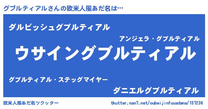 | 男性向けラノベタイトル風あだ名 | 『グブルティアルの嫁は女の子じゃないと思った?』 |