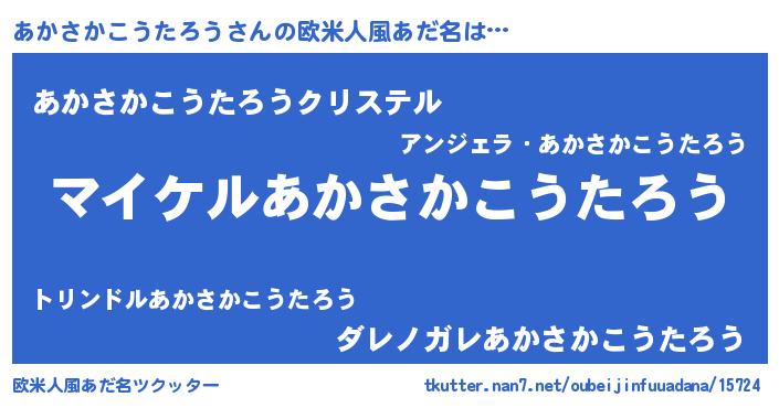 | 男性向けラノベタイトル風あだ名 | 『あかさかこうたろうの憂鬱』 |
