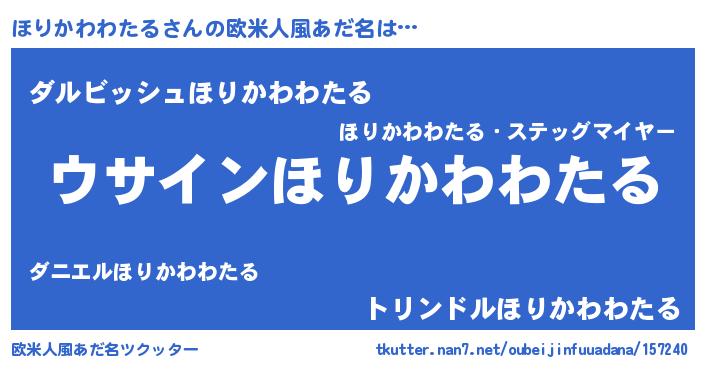 | 胡散臭い通販商品みたいなあだ名 | 『信頼と実績のネックレス…その名も「ほりかわわたる」』 |
