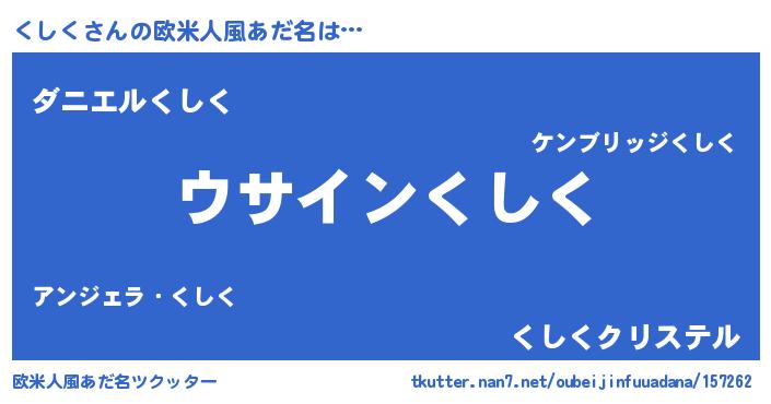 | 男性向けラノベタイトル風あだ名 | 『くしくの嫁は女の子じゃないと思った?』 |