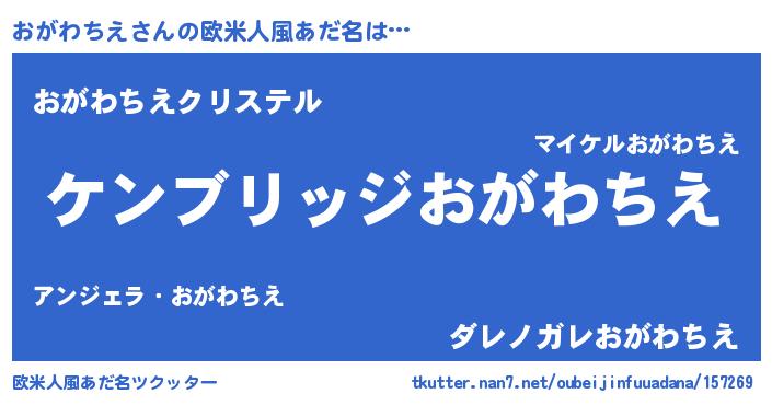 | 女子向けラノベタイトル風あだ名 | 『おがわちえなんてお断りですっ。』 |