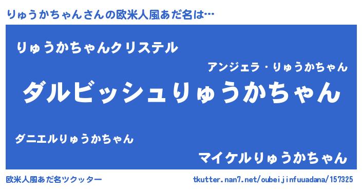 | 女子向けラノベタイトル風あだ名 | 『異世界で失敗しない100のりゅうかちゃん』 |