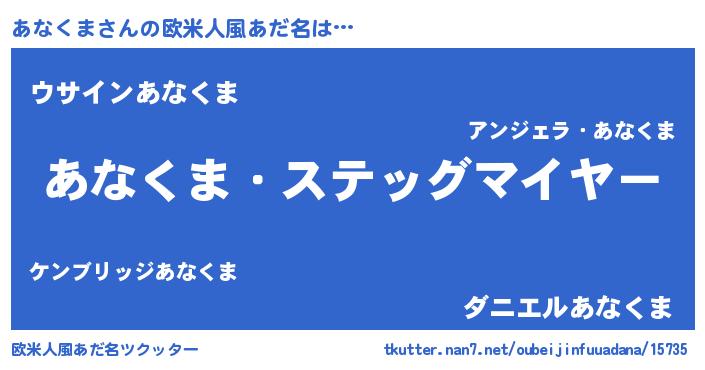 | ヒーロー風カッコイイあだ名 | 『黄金騎士アナ』『天空の使者あなくま』 |