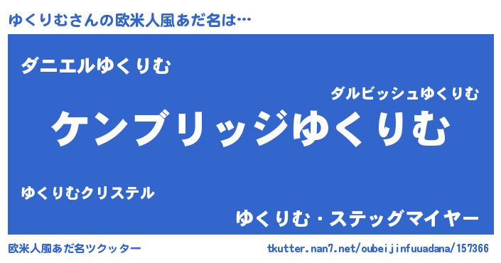 | 男性向けラノベタイトル風あだ名 | 『Re:ゆくりむから始める異世界生活』 |