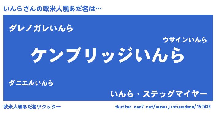 | 男性向けラノベタイトル風あだ名 | 『Re:いんらから始める異世界生活』 |