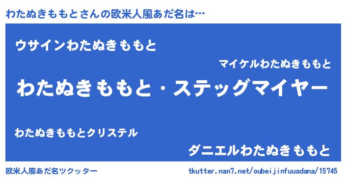 | 男性向けラノベタイトル風あだ名 | 『うちのわたぬきももとが世界を掌握している!』 |