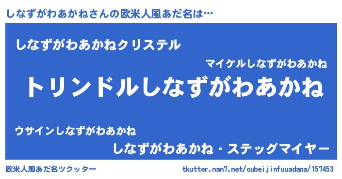 | 男性向けラノベタイトル風あだ名 | 『転生したらしなずがわあかねだった件』 |