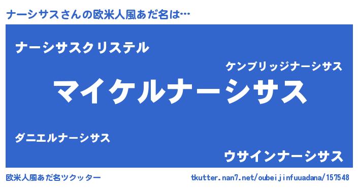| 男性向けラノベタイトル風あだ名 | 『ナーシサスの憂鬱』 |