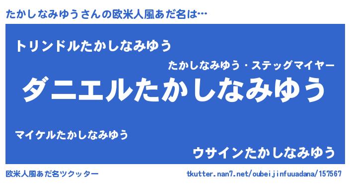 | 男性向けラノベタイトル風あだ名 | 『おまえをオタクにしてやるから、俺をたかしなみゆうにしてくれ! 』 |