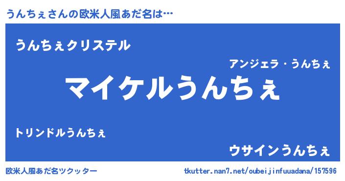 | 胡散臭い通販商品みたいなあだ名 | 『億万長者になれるブレスレット…その名も「うんちぇ」』 |
