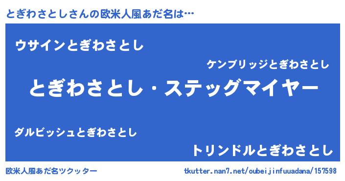 | ヘコむあだ名 | 『とぎ太郎』『とぎわさとし(苦笑)』 |