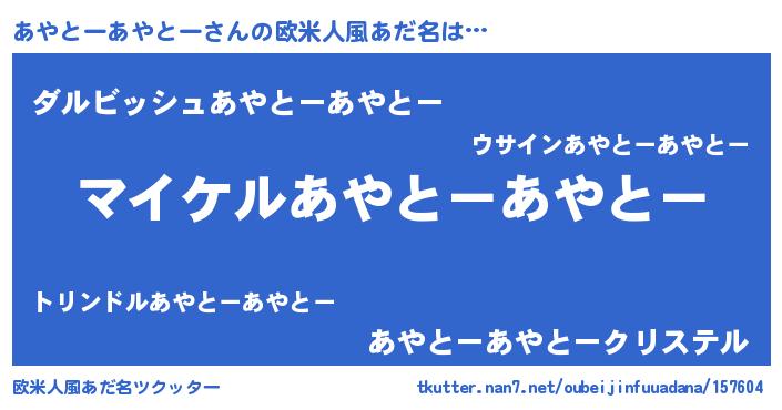 | 男性向けラノベタイトル風あだ名 | 『アヤトーアヤトーアートオンライン』 |