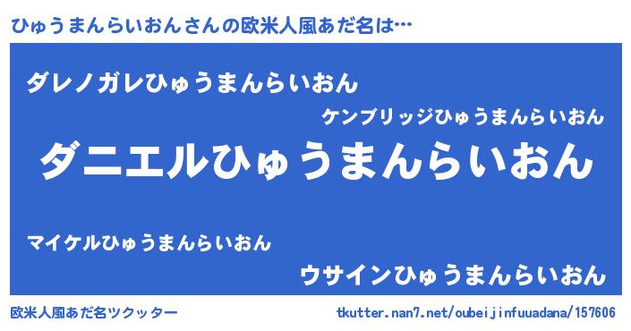 | ヒーロー風カッコイイあだ名 | 『慈愛の使者ひゅうまんらいおん』 |