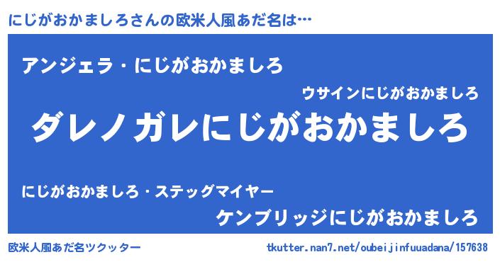 | 男性向けラノベタイトル風あだ名 | 『この素晴らしい世界ににじがおかましろを!』 |