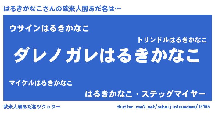 | 男性向けラノベタイトル風あだ名 | 『魔弾の王とはるきかなこ』 |