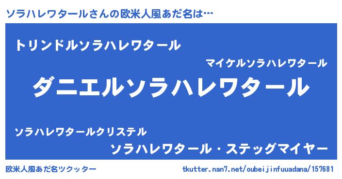 | ヒーロー風カッコイイあだ名 | 『正義の使者ソラハレワタール』 |