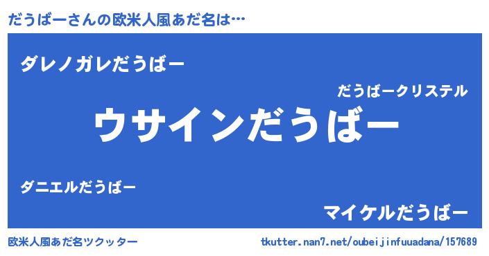 | 男性向けラノベタイトル風あだ名 | 『だうばーの嫁は女の子じゃないと思った?』 |