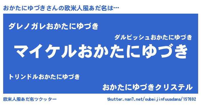 | 男性向けラノベタイトル風あだ名 | 『オカタニユヅキアートオンライン』 |
