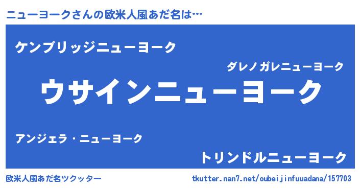 | 男性向けラノベタイトル風あだ名 | 『ニューヨークの嫁は女の子じゃないと思った?』 |
