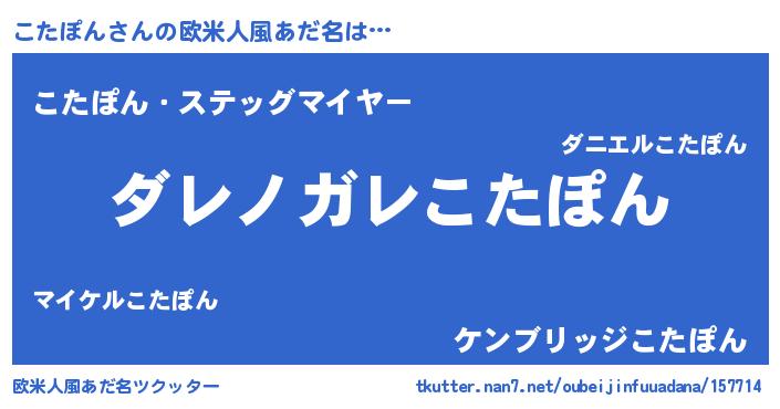 | 意味不明あだ名 | 『住所不定無職こたぽん(12歳)』 |