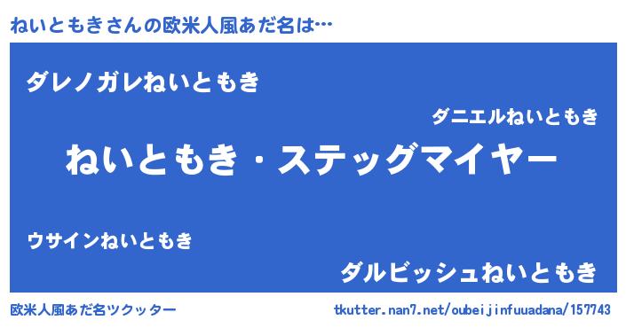 | ヘコむあだ名 | 『ねいともき(笑)』『ねいを』 |