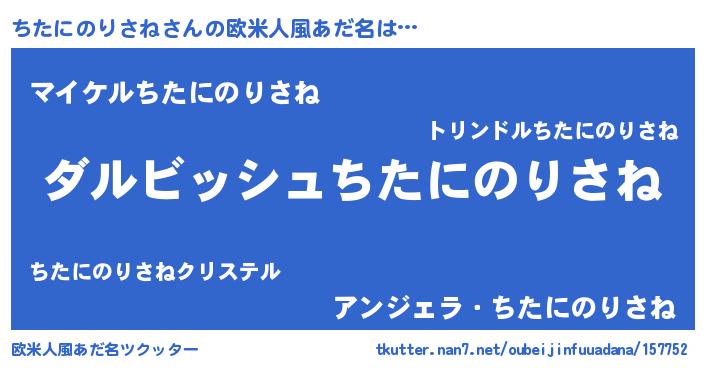 | 男性向けラノベタイトル風あだ名 | 『ちたにのりさねという概念が存在しない退屈な世界 』 |