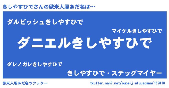 | 男性向けラノベタイトル風あだ名 | 『おまえをオタクにしてやるから、俺をきしやすひでにしてくれ! 』 |
