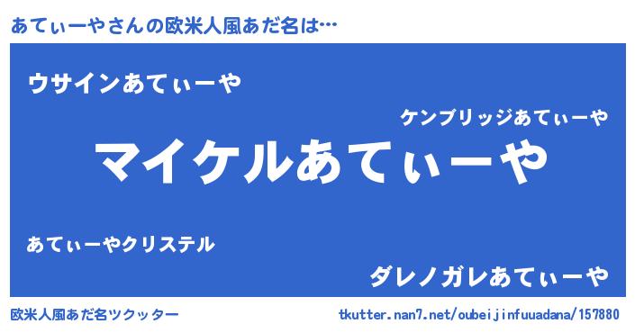 | 男性向けラノベタイトル風あだ名 | 『あてぃーやの憂鬱』 |