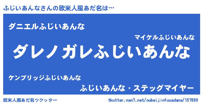 | 男性向けラノベタイトル風あだ名 | 『魔弾の王とふじいあんな』 |