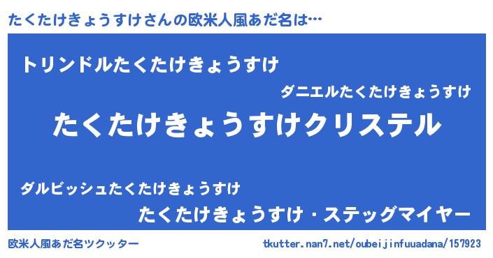 | 意味不明あだ名 | 『たくたけきょうすけフォーエバー』 |