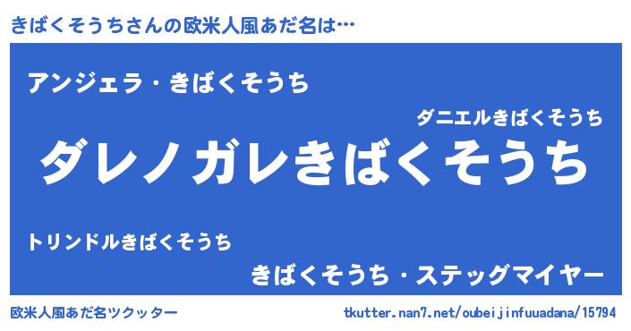 | 意味不明あだ名 | 『住所不定無職きばくそうち(4歳)』 |