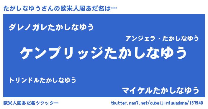| 男性向けラノベタイトル風あだ名 | 『Re:たかしなゆうから始める異世界生活』 |