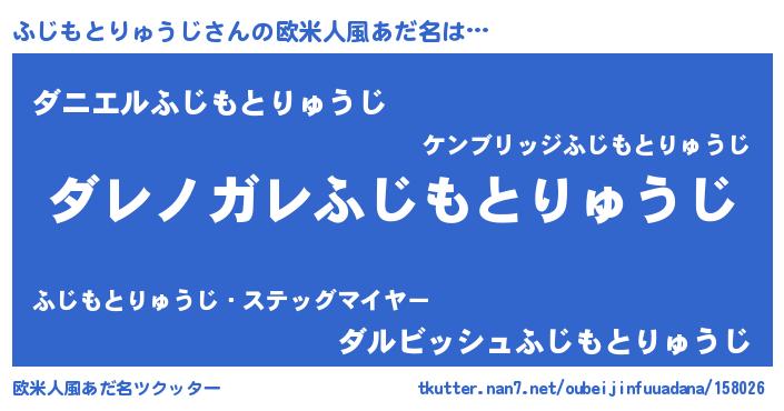 | 男性向けラノベタイトル風あだ名 | 『この素晴らしい世界にふじもとりゅうじを!』 |
