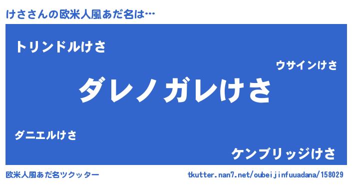 | 男性向けラノベタイトル風あだ名 | 『魔弾の王とけさ』 |