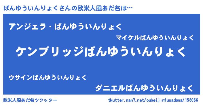 | ヒーロー風カッコイイあだ名 | 『最強戦士バンユウインリョク』 |