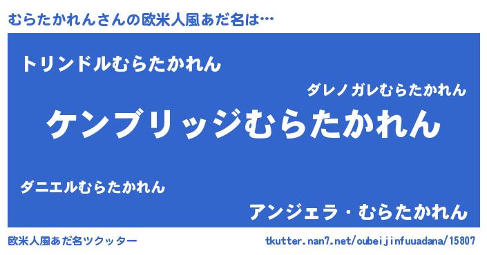 | 男性向けラノベタイトル風あだ名 | 『Re:むらたかれんから始める異世界生活』 |