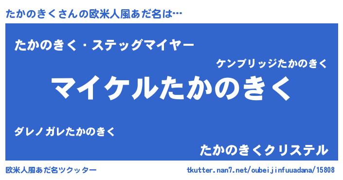| 男性向けラノベタイトル風あだ名 | 『タカノキクアートオンライン』 |